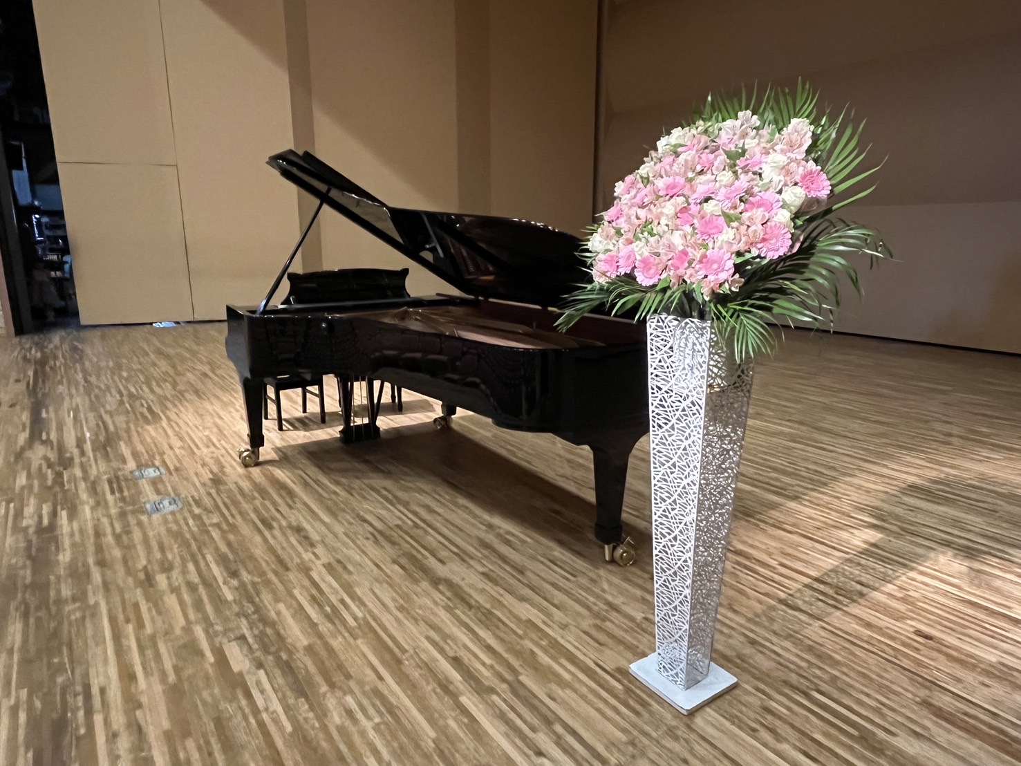 (昨年いただいたお花とHeartful Concert Op.17のステージの写真です。)